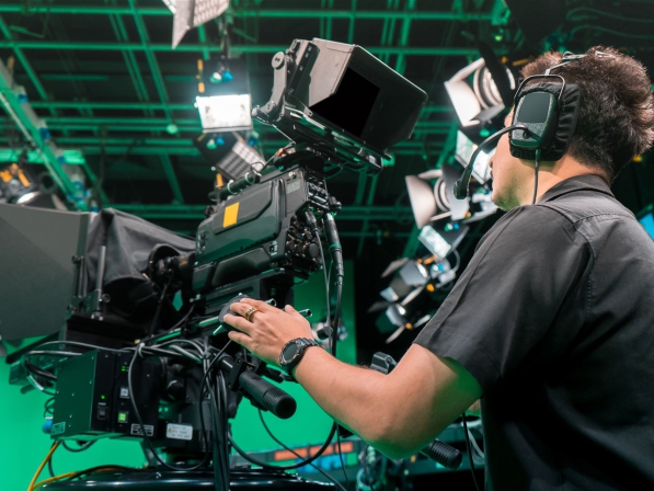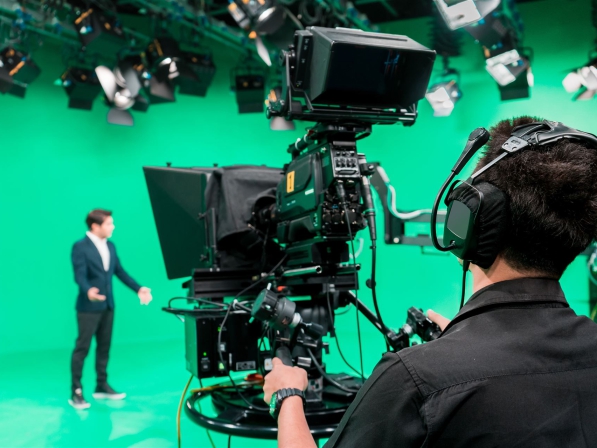 Das Herzstück ist die LED-4K Hintergrund-Wand. Über eine Mediensteuerung inkl. Touchcontrol-Panels wechseln wir Bilder, Grafiken, Videos und Social Media Inhalte die dann zu einer visuellen Umrahmung von Nachrichten, Video-Clips, Werbeproduktionen und Shootings dargestellt werden.